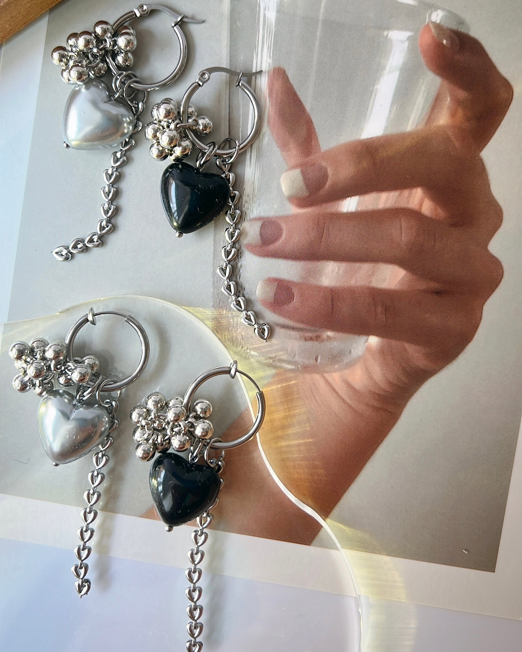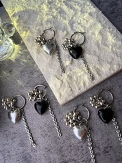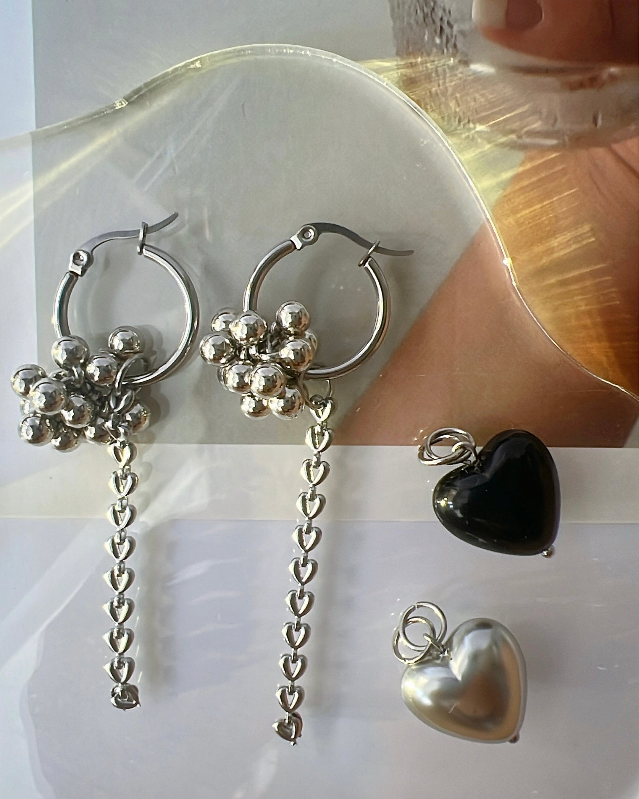 tzumeiハンドメイド初期に使っていたボリューミーのブラックとシルバーハートパーツ、