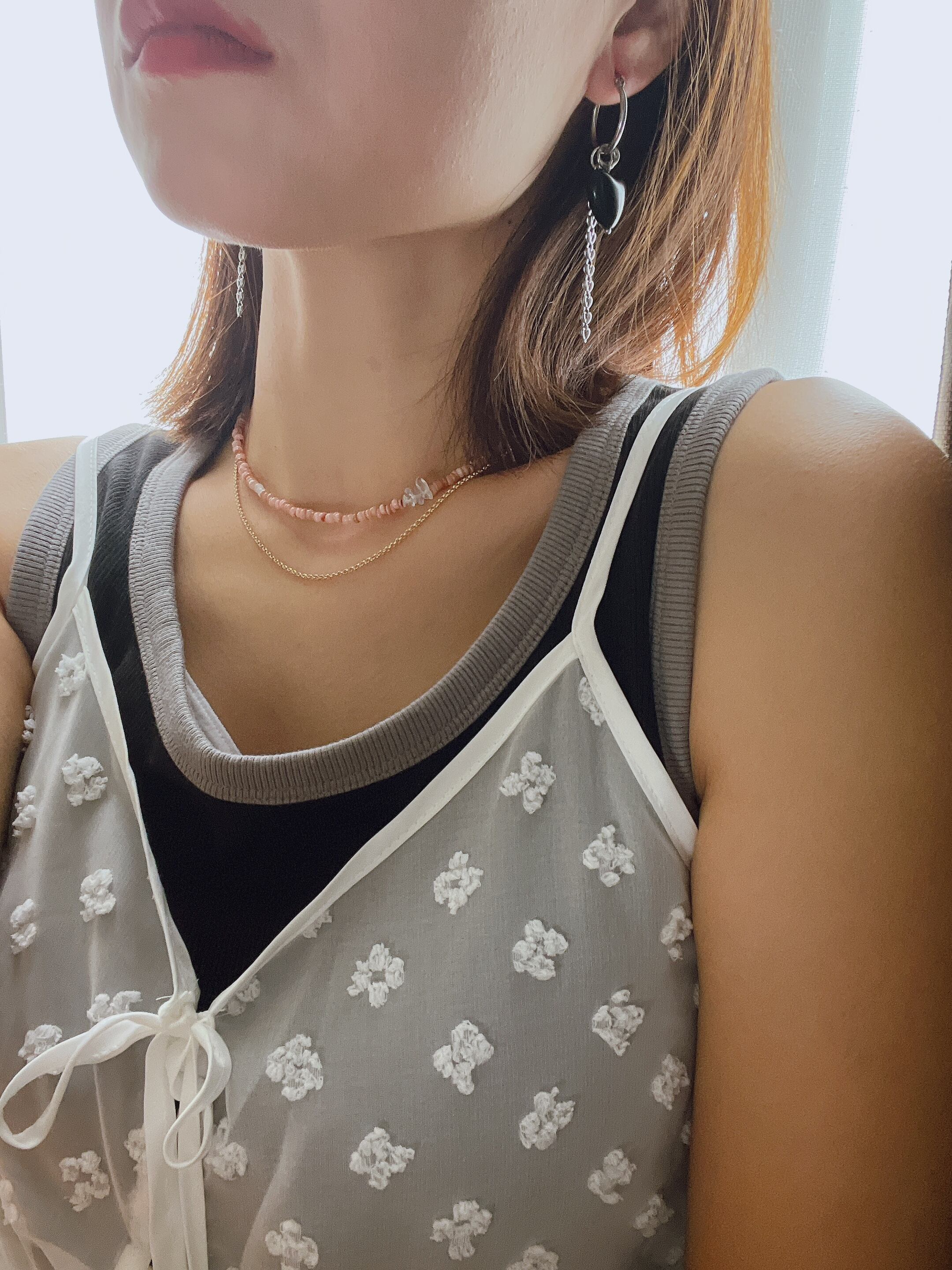 金具、チェーンすべて変色しにくい、金属アレルギー対応素材にこだわっています。もしくは変色防止コーティングをしています。