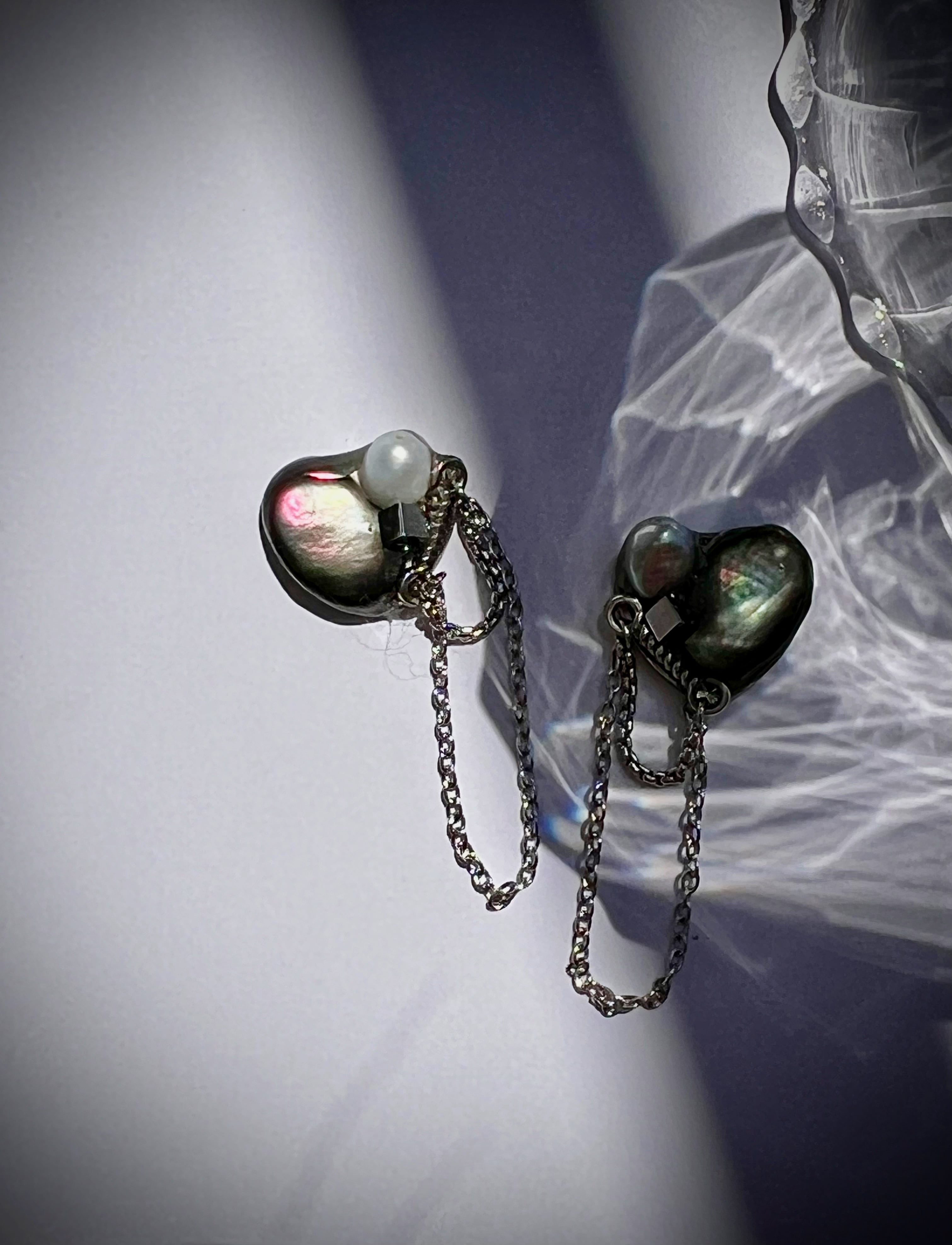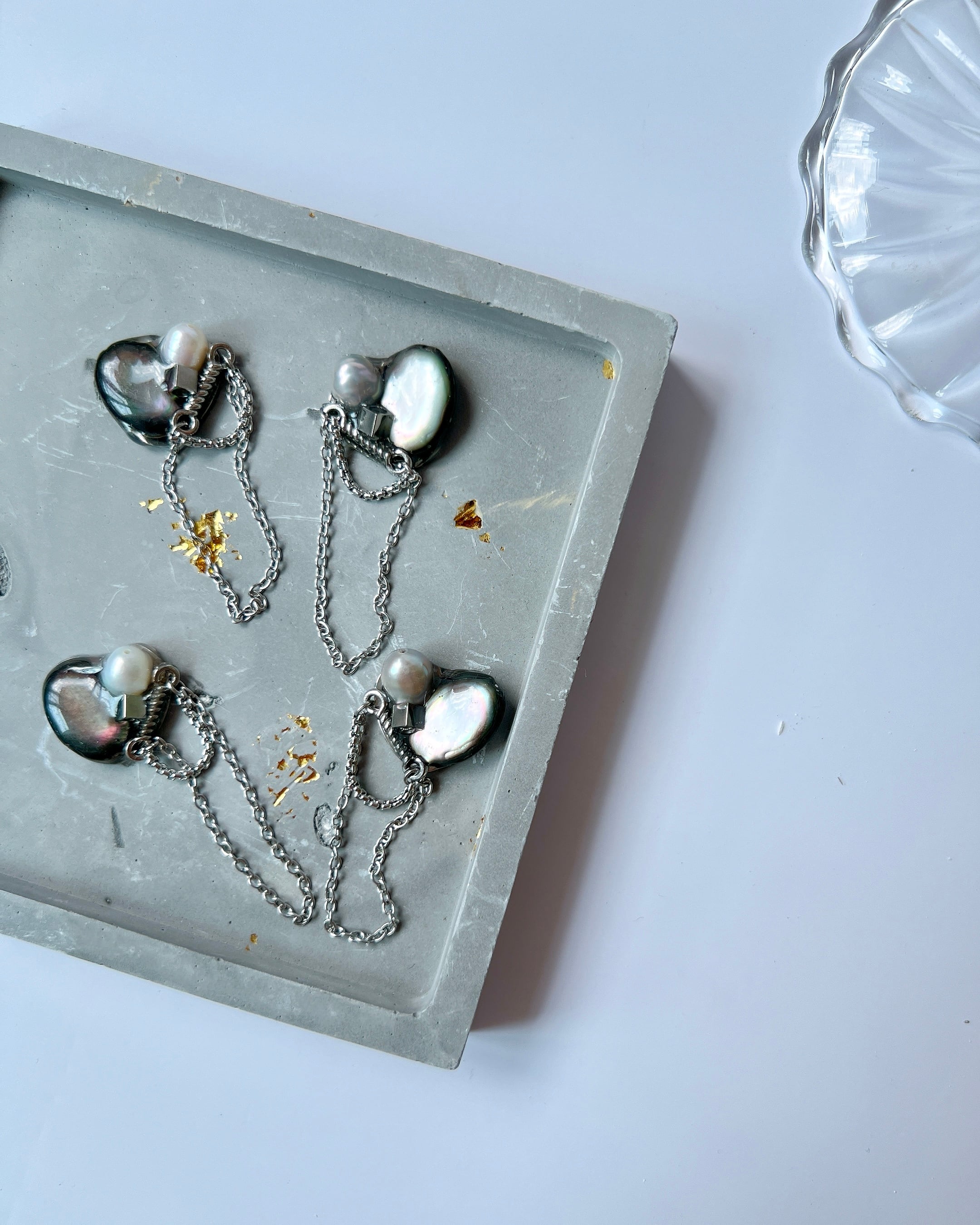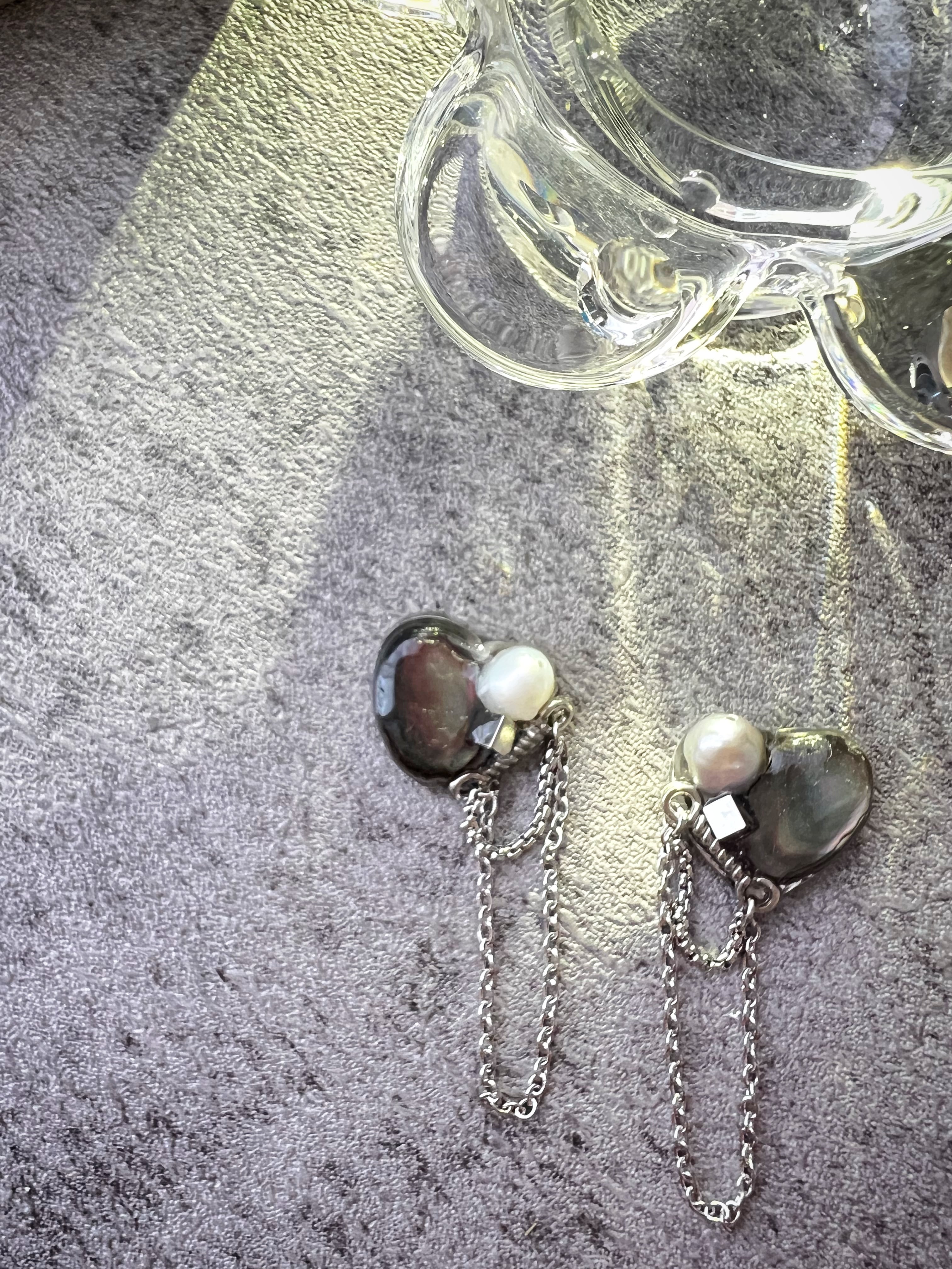 淡水パールとシェルパーツを組み合わせたハートモチーフ「Echo」は、クールな中に大人かわいい余韻を感じさせるピアス・イヤリング