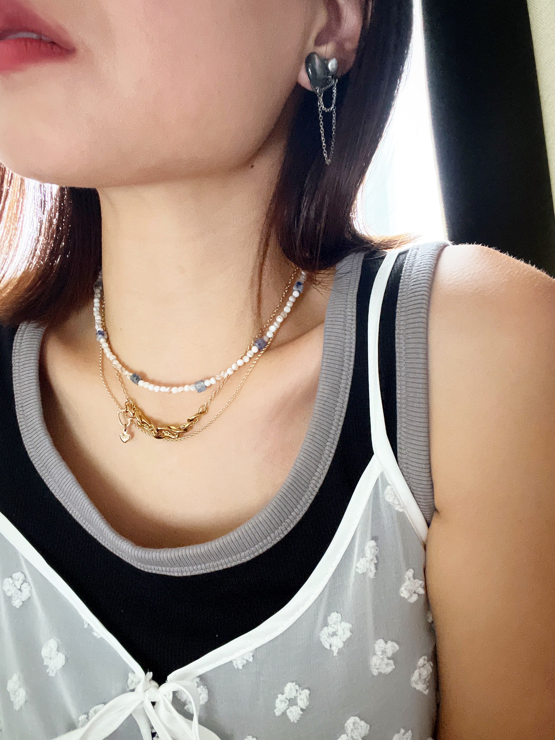 金具、チェーンすべて変色しにくい、金属アレルギー対応素材にこだわっています。もしくは変色防止コーティングをしています。