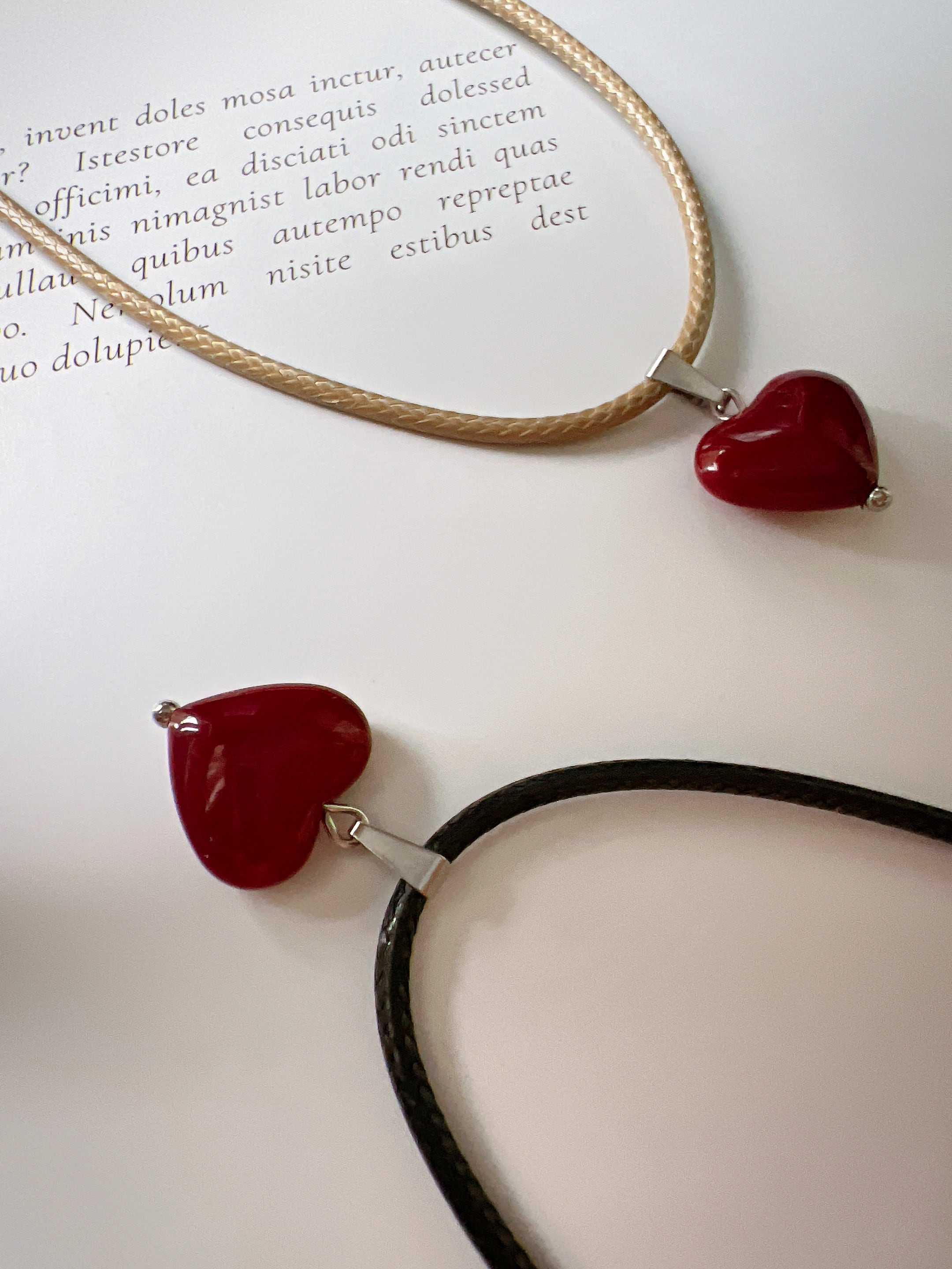 No.217 Bloody heart drop long rope necklace (black/beige)