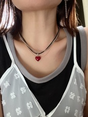 ◀︎ No.218 Bloody heart rope necklace (black/beige) ▶︎