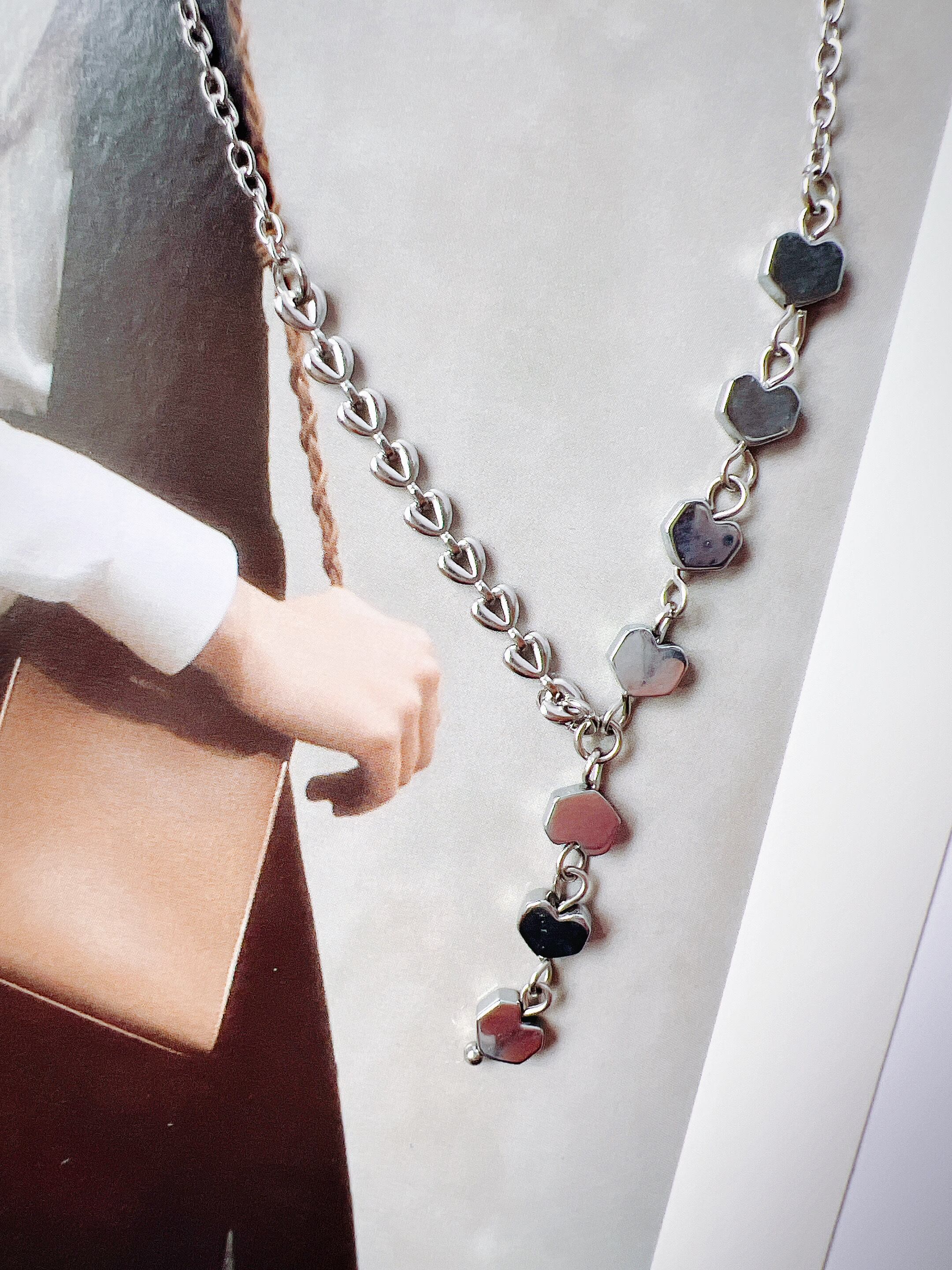 ハートパーツとハートチェーンを組み合わせた、