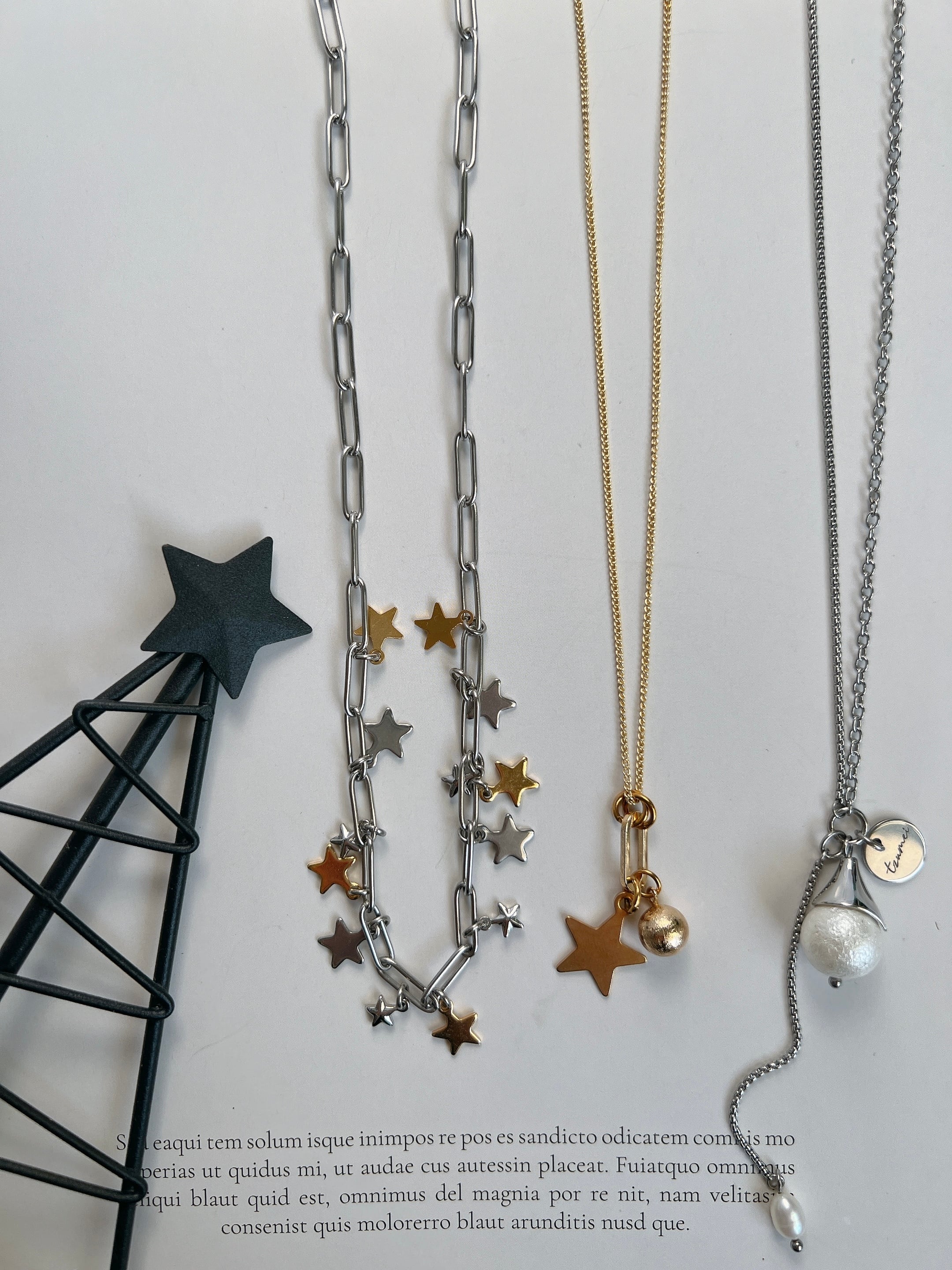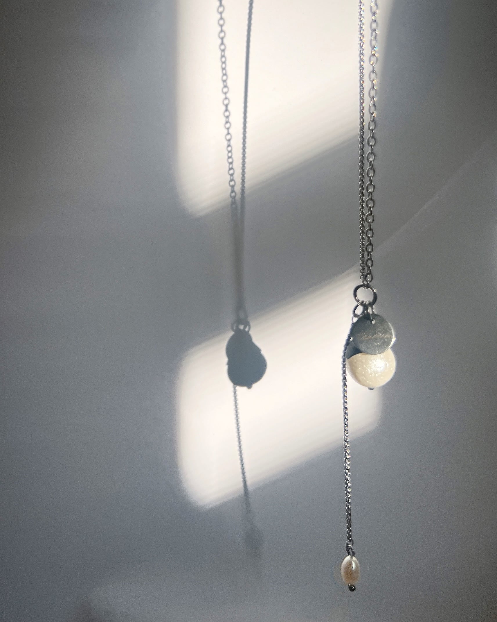 ミニマルのシルバーカラーが大人の胸元にそっと馴染みます。