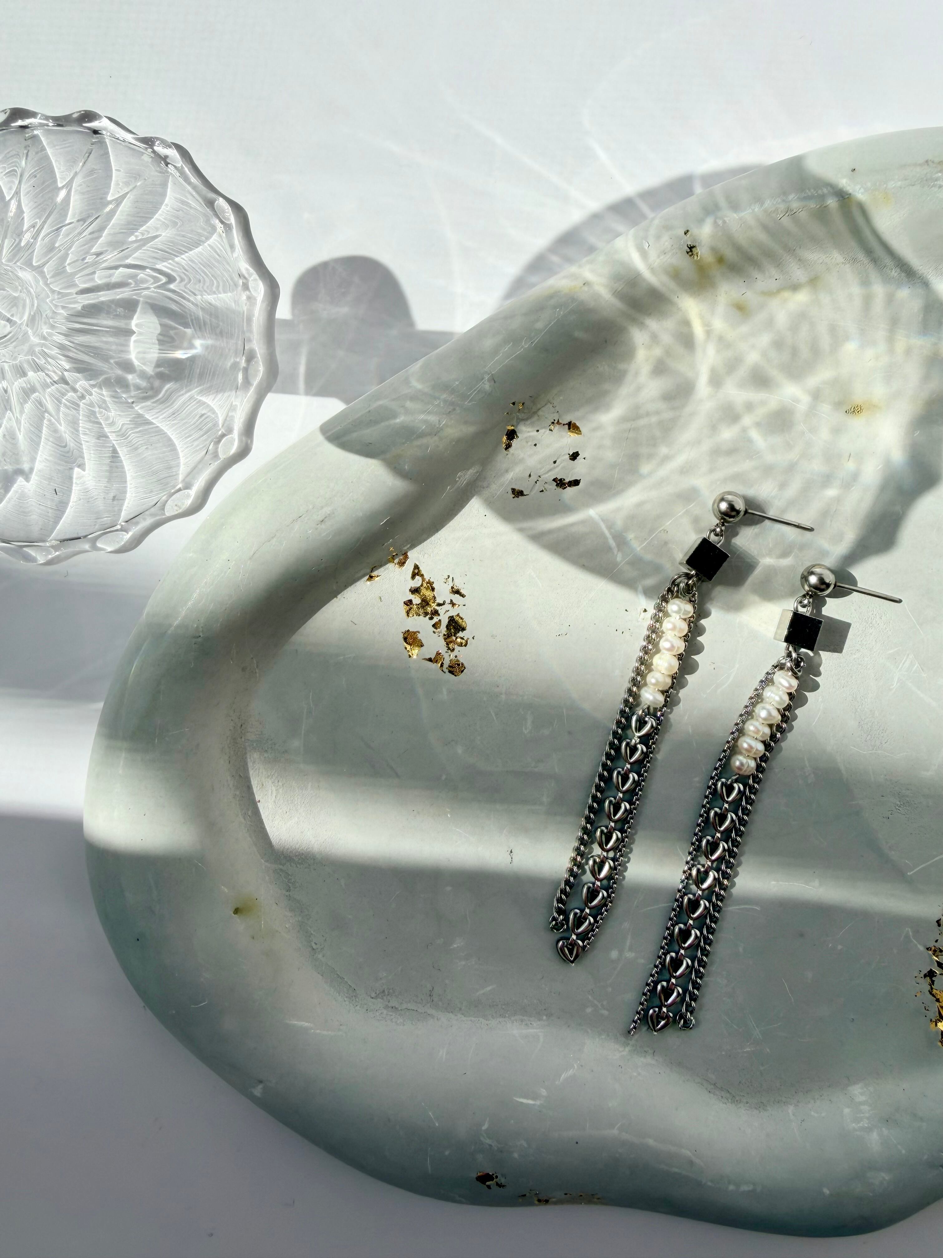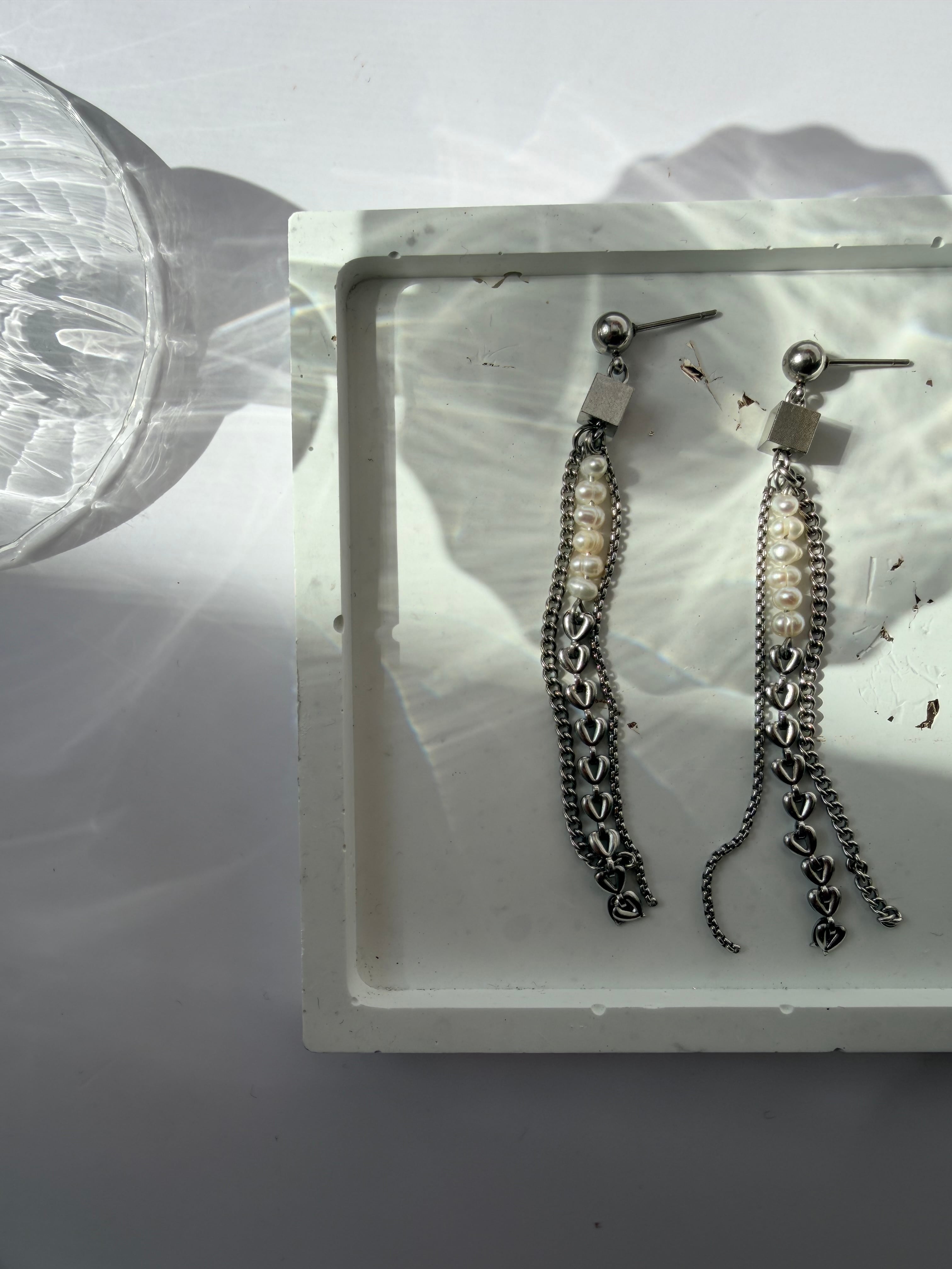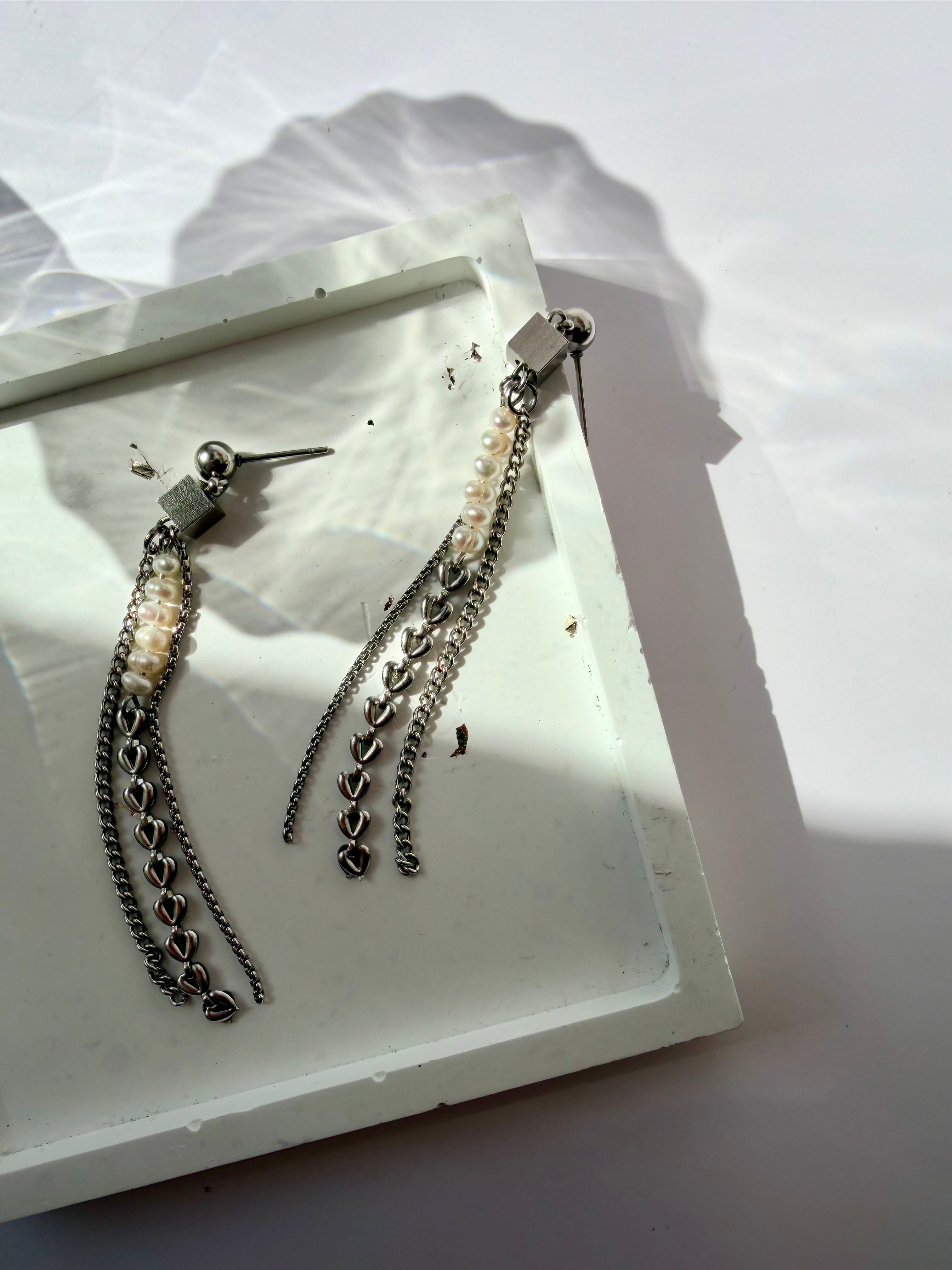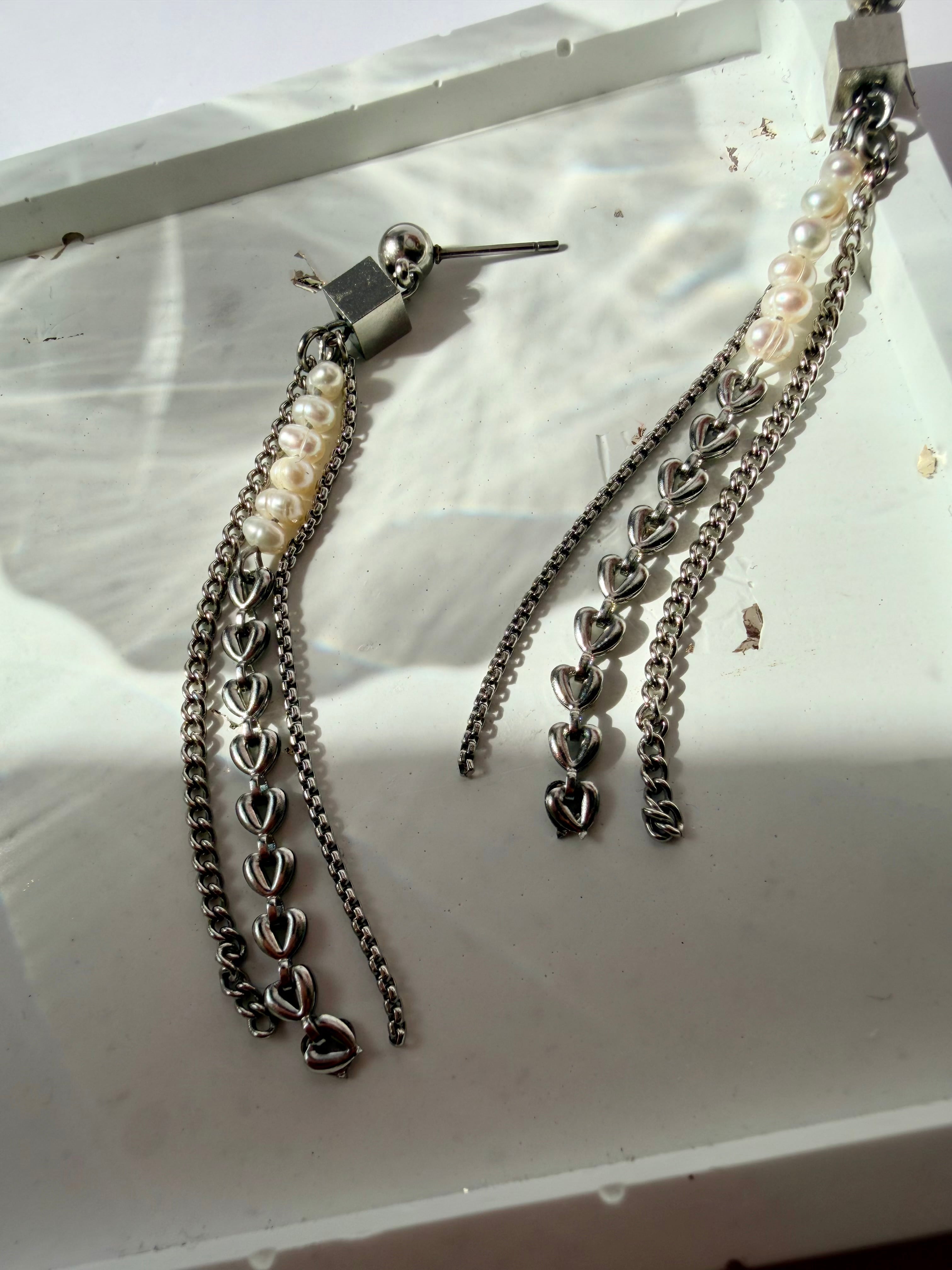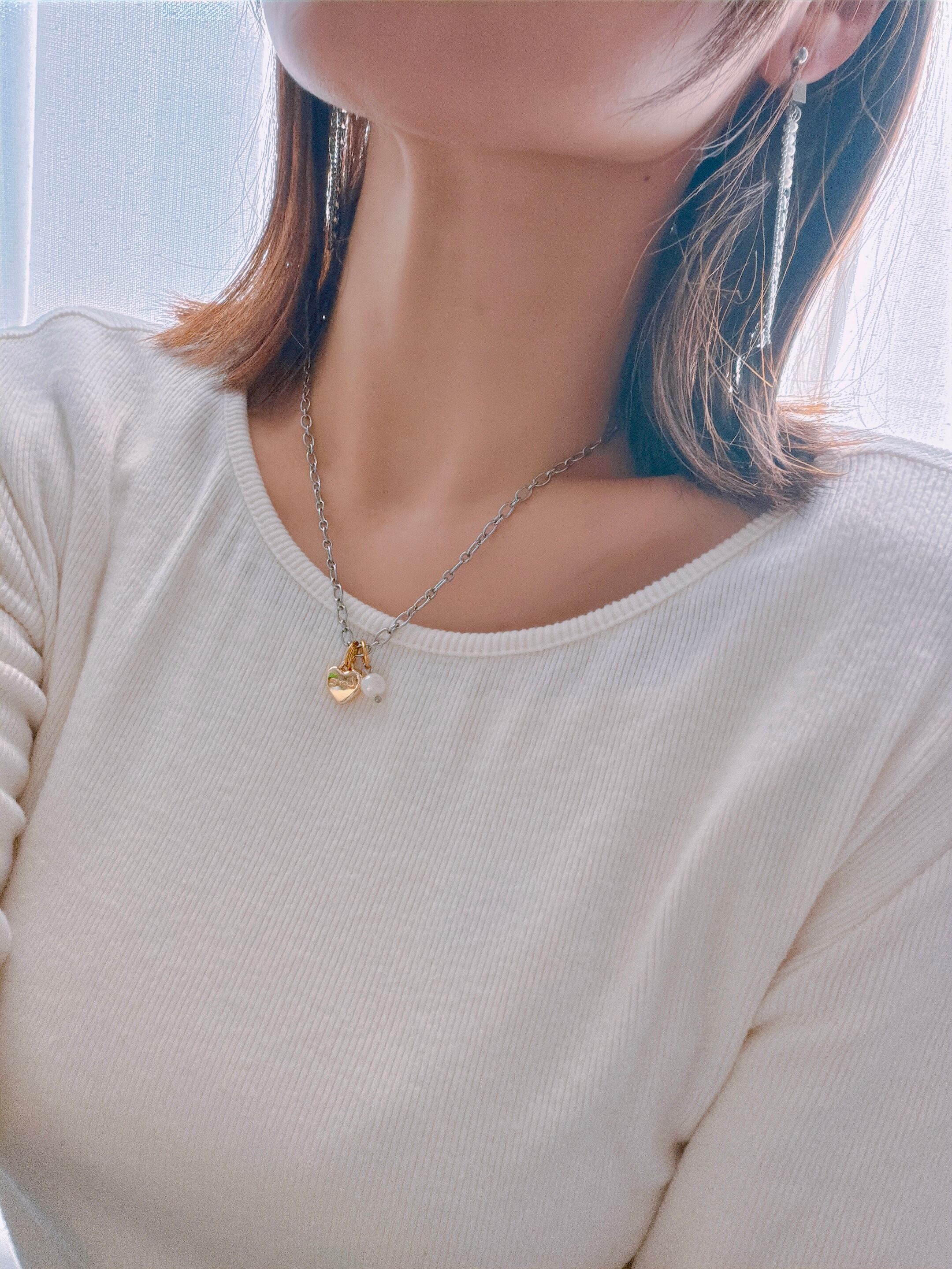 小粒の淡水パールとハートチェーン、