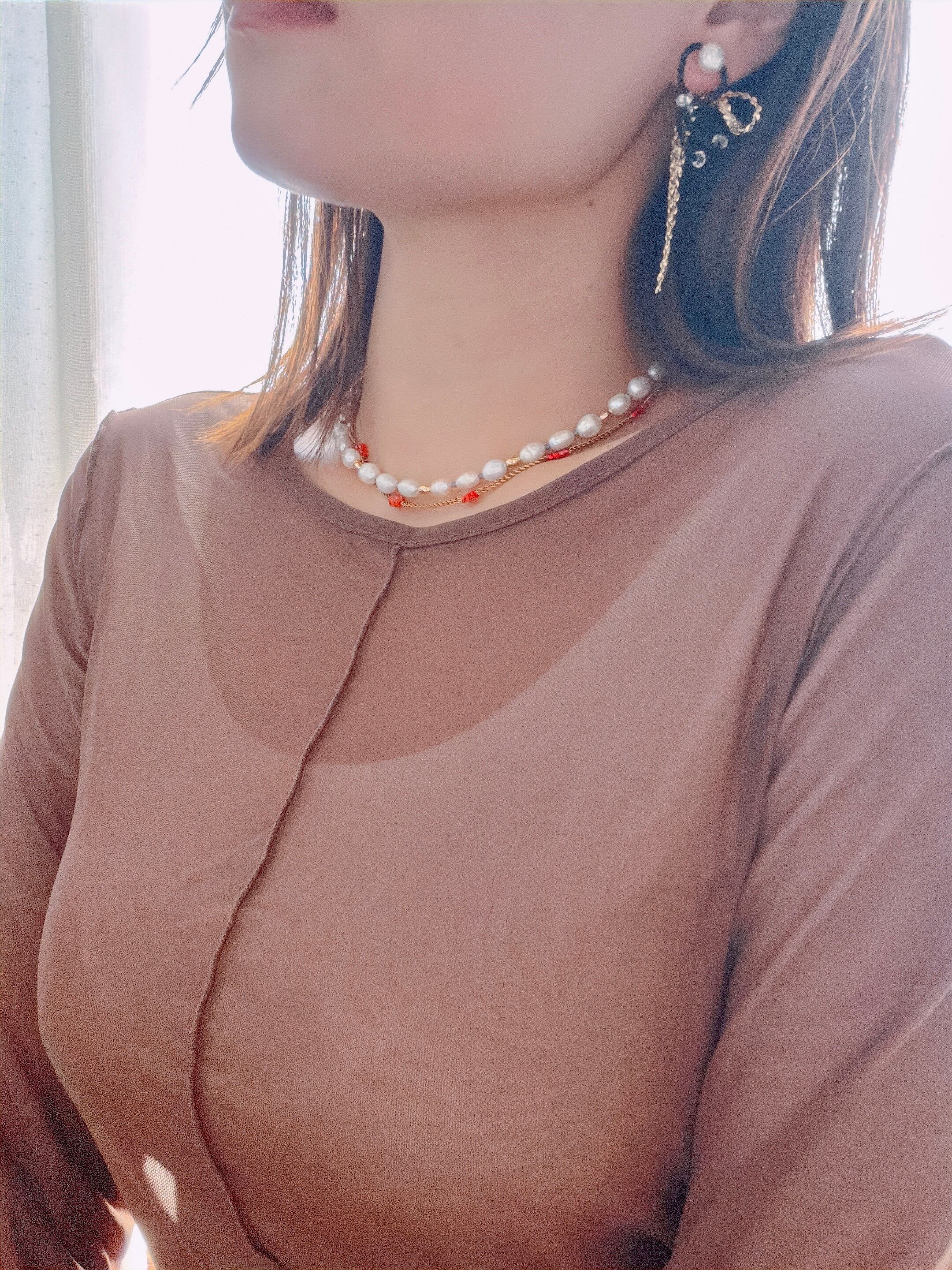 ◼︎淡水パール、水晶ビーズ